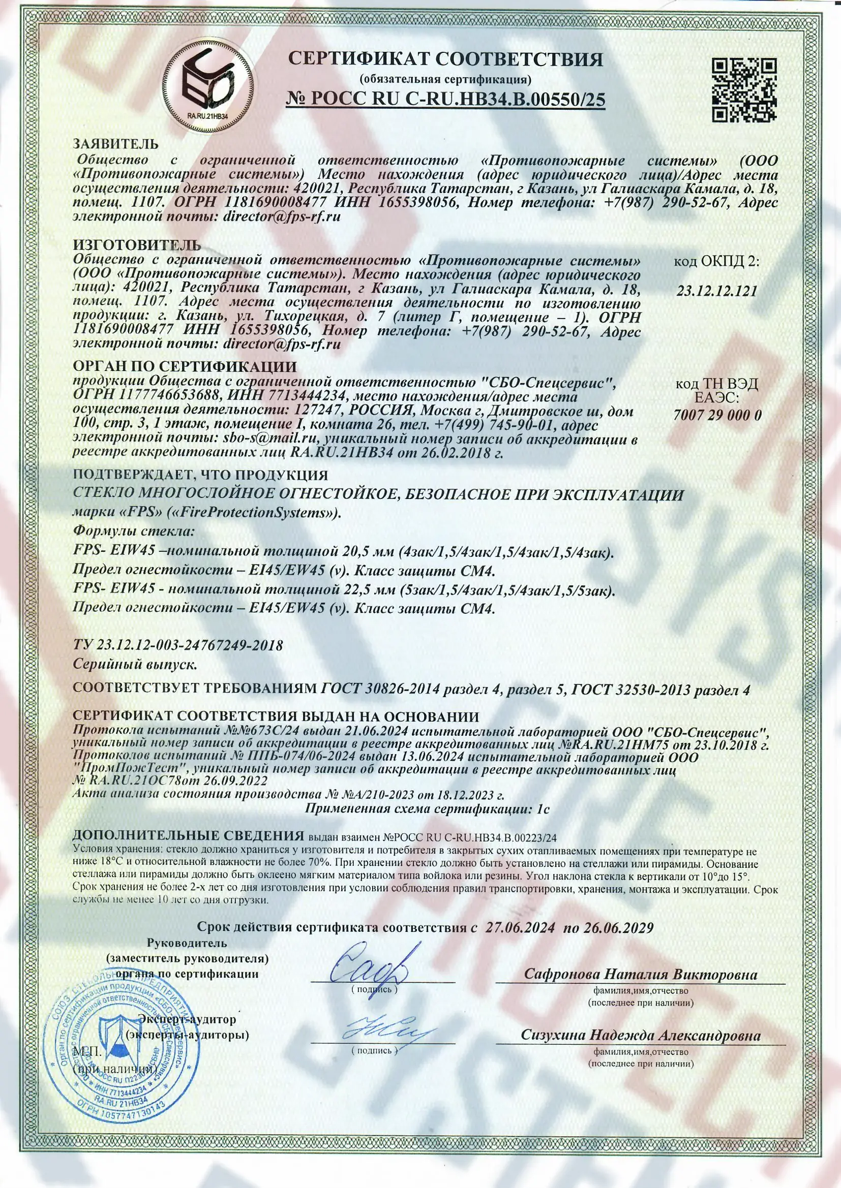 Сертифицировано по ГОСТ Р 53305-2009 и ISO 9001. Легко проходит экспертизу. Противопожарные конструкции: стекло, двери, перегородки, витражи – с гарантией до 5 лет. Компания «Fire Protection Systems» известна своим индивидуальным подходом к каждому клиенту, предлагая оперативную доставку, качественный монтаж и техническое обслуживание. Для заказа можно воспользоваться официальным сайтом, позвонить по номеру телефона 8 800 222 99 40 или отправить письмо на электронную почту office@fps-rf.ru.