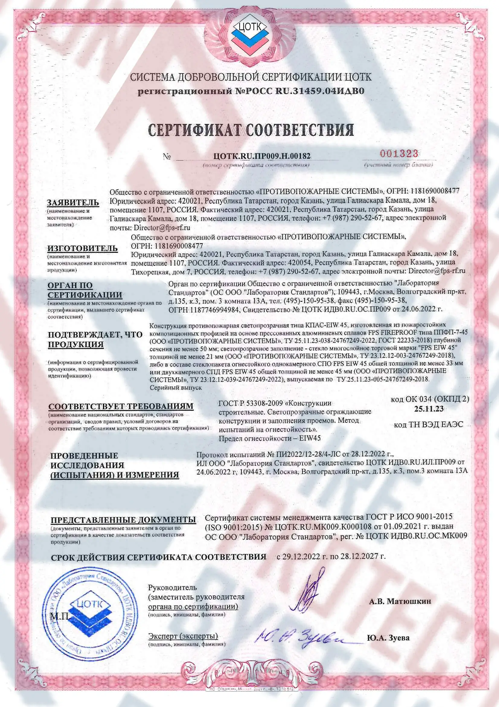 Противопожарные витражи EIW 45 изготавливаются с использованием специального многослойного стекла и огнестойких профилей, что обеспечивает их высокую эффективность в экстремальных условиях. Они не только препятствуют распространению пламени, но и минимизируют тепловое излучение, защищая соседние помещения.